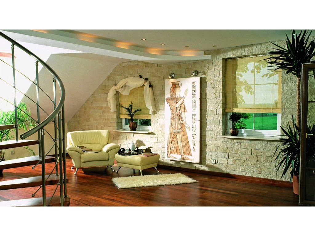 Sádrové obklady ARENA 1 dokonale imitují vápenec, který se nachází v oblasti Sinajského poloostrova. Jemná textura obkladu zaručuje velmi přirozený vzhled a ideální materiál k použití v interiéru.